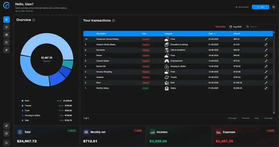 OCRA is a personal finance app that tracks your income and expenses with precision. Powered by Qwen (developed by Alibaba), it runs entirely on your device, so your financial data never leaves your machine.