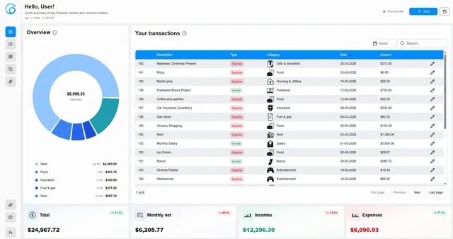 Easily maintain, track, and manage all your income and expenses in one organized place.
